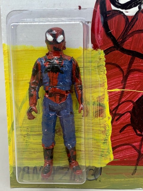 mixed media on board with altered action figure